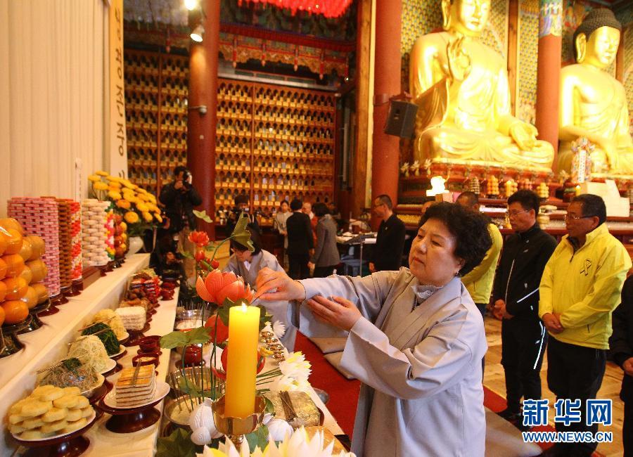 4月14日,在韩国首尔曹溪寺,一位工作人员在法会上上香。当日,韩国主要佛教派别曹溪宗在首尔曹溪寺举行“岁月”号沉船事故一周年追悼法会,为“岁月”号遇难者亡灵超度。新华社记者 姚琪琳 摄 图片来源:新华网