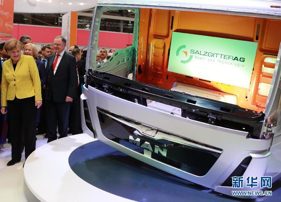4月13日,在德国汉诺威,德国总理默克尔(前)参观汉诺威工业博览会。 新华社记者 罗欢欢 摄 图片来源:新华网