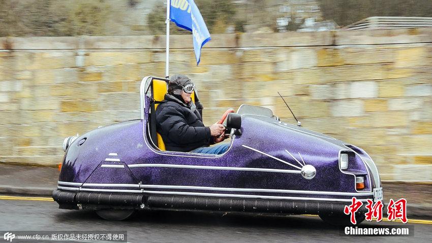 近日,苏格兰霍伊克,汤姆·埃文斯驾驶着他的碰碰车行驶在路上。这辆看起来像是游乐场里的紫色车辆却获得了上街行驶的许可。曾经经营过游乐场的埃文斯很擅长驾驭这种另类车辆。它是经过改装的燃油碰碰车。这辆车有照明灯、指示器、燃油表还有纳税证明。他的妻子和两个儿子为埃文斯于两年前为埃文斯买得这辆碰碰车。