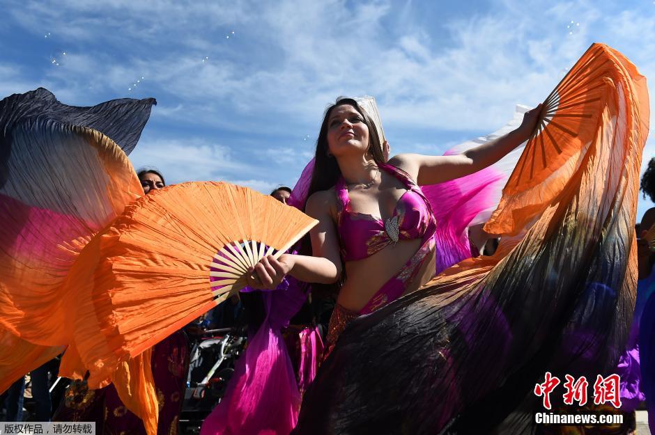 当地时间2015年4月11日,法国马赛,马赛狂欢节举行,艺术家进行表演。