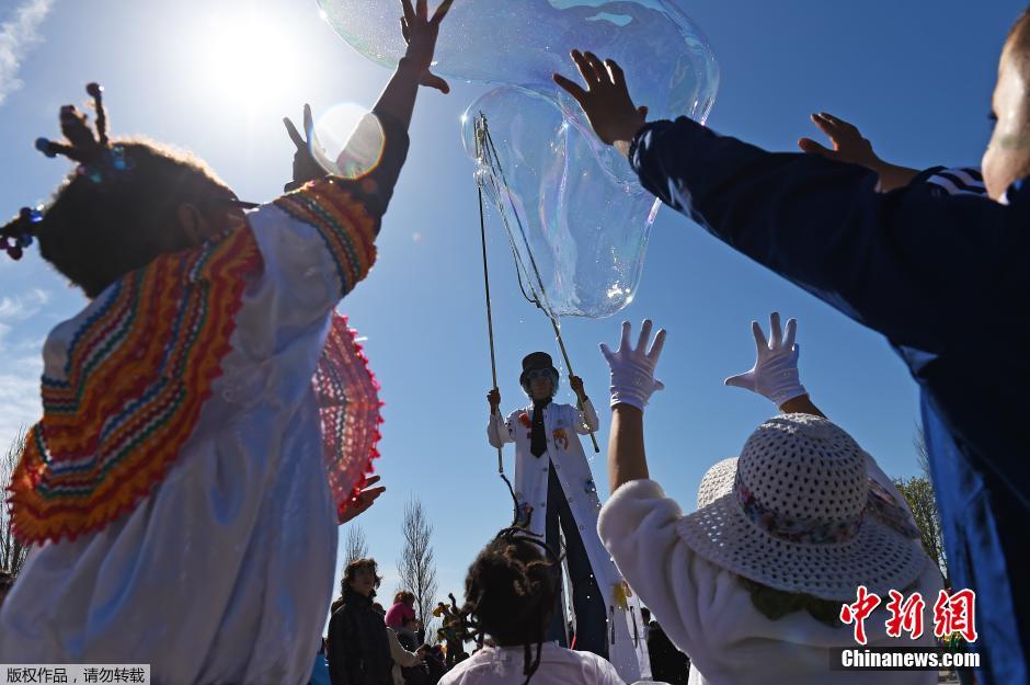 当地时间2015年4月11日,法国马赛,马赛狂欢节举行,艺术家进行表演。