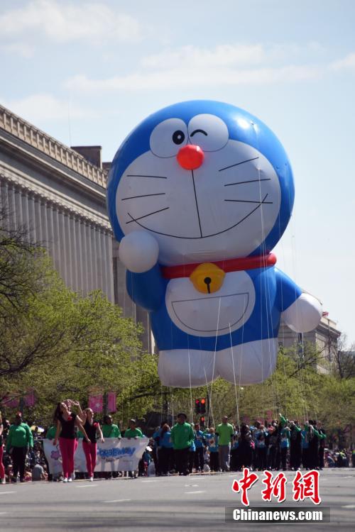 当地时间4月11日,一年一度的樱花节大游行活动在美国首都华盛顿举行,吸引众多游客观看。根据国家公园管理处的预测,华盛顿国家公园附近的樱花已于本月10日达到峰期,本周末是赏樱的最佳时机。中新社发 刁海洋 摄