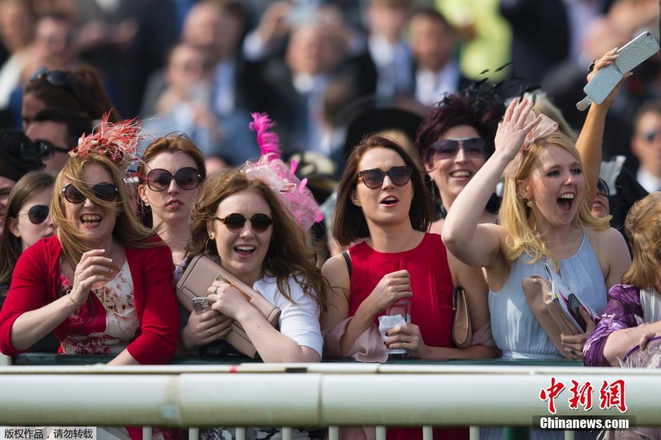 当地时间4月10日,英国利物浦,安特里赛马场举行英国国家障碍赛马大赛,比赛前一天举办女士日,女士们观看自己喜欢的赛马出场。