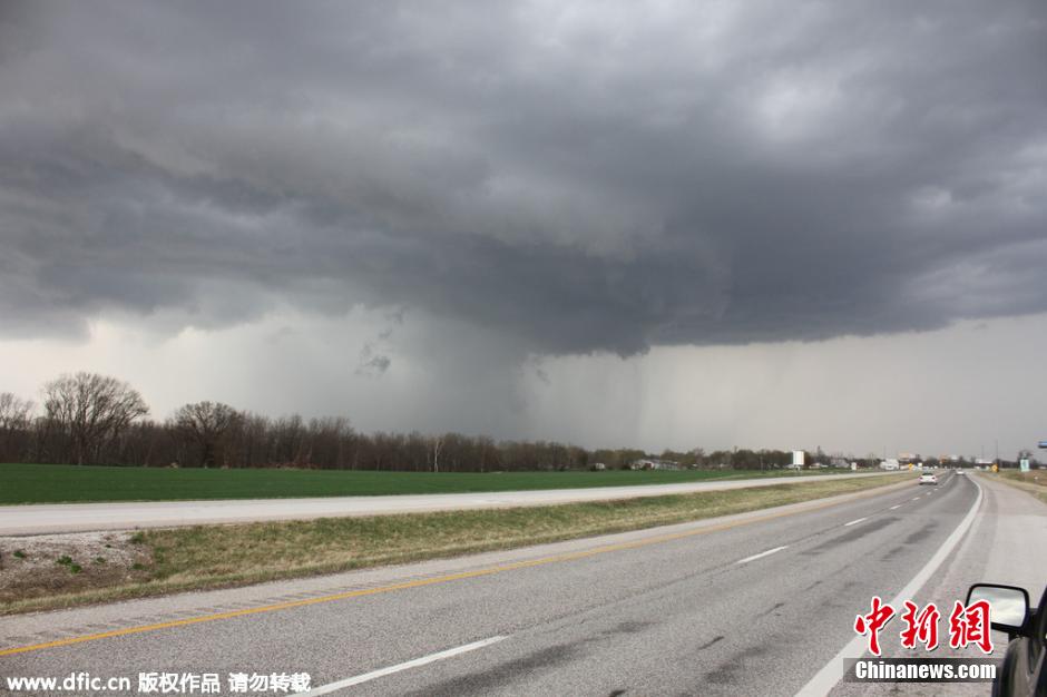 当地时间2015年4月9日,美国伊利诺伊州昆西,一个巨大的雷暴“超级单体”过境。巨型龙卷风横扫美国中西部地区,已经造成1人死亡。图片来源:东方IC 版权作品 请勿转载