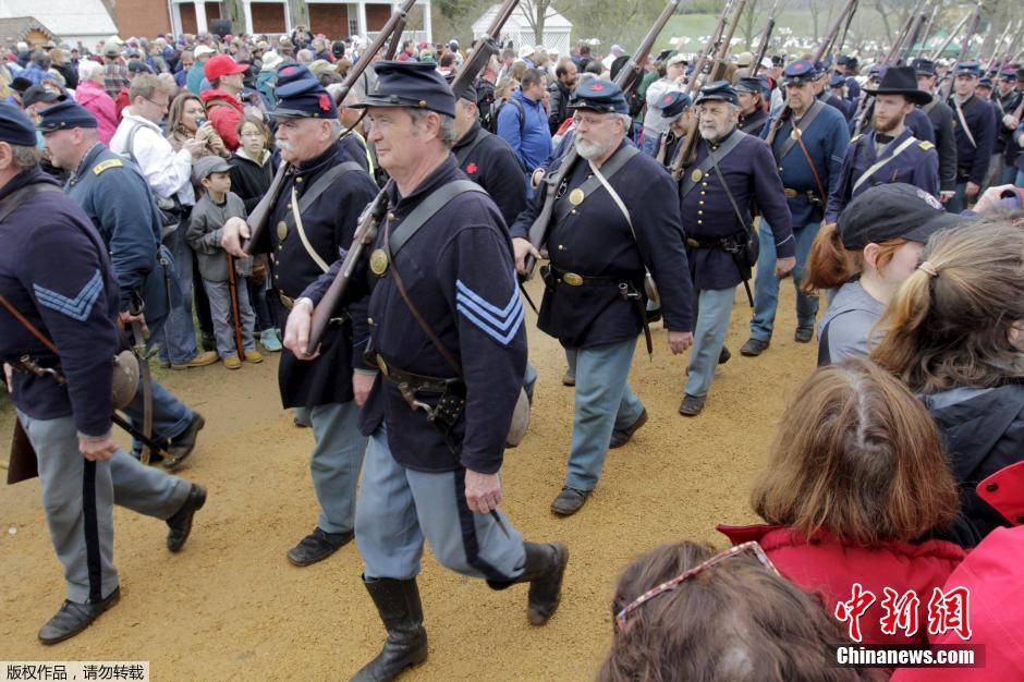 当地时间4月9日,美国维吉尼亚州,以重现历史的形式纪念南北内战结束150周年。