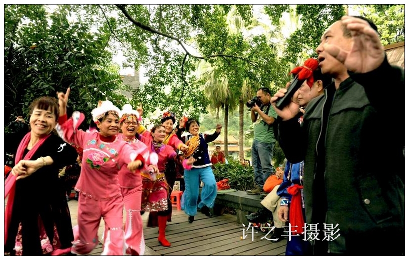 2015年4月11日,走进广西柳州鱼峰山,熟悉的“春歌好比春江水,不怕滩险弯又多”几句《刘三姐》电影歌词回荡在耳边,这就是当年刘三姐成名的故乡。在这里人们男女老少自发定期在鱼峰山下赛歌、赏歌、对歌,参与者成百上千甚至多达万人。他们“以歌会友、 以歌传情、 以歌为媒、以歌传艺”用歌声舞姿相互交流情感。从这里真实地反映出柳州山歌源远流长的历史。工人日报-中工网记者许之丰摄影报道