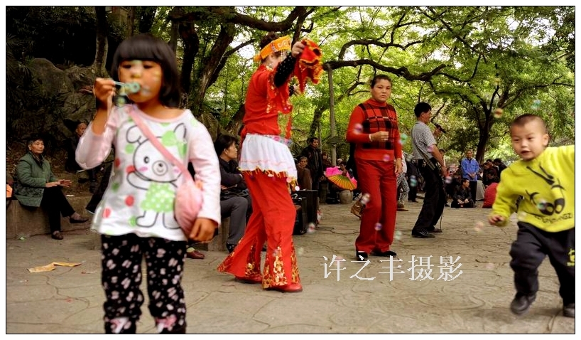 2015年4月11日,走进广西柳州鱼峰山,熟悉的“春歌好比春江水,不怕滩险弯又多”几句《刘三姐》电影歌词回荡在耳边,这就是当年刘三姐成名的故乡。在这里人们男女老少自发定期在鱼峰山下赛歌、赏歌、对歌,参与者成百上千甚至多达万人。他们“以歌会友、 以歌传情、 以歌为媒、以歌传艺”用歌声舞姿相互交流情感。从这里真实地反映出柳州山歌源远流长的历史。工人日报-中工网记者许之丰摄影报道