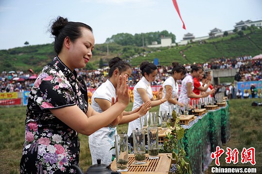 4月18日,第二届云雾山茶文化节在贵定县云雾镇民族文化中心举行。当地苗族举行了隆重的贡茶祭祖仪式。本次文化节吸引了贵州、重庆、湖南、广西等省内外游客及茶商参加。贺俊怡 摄