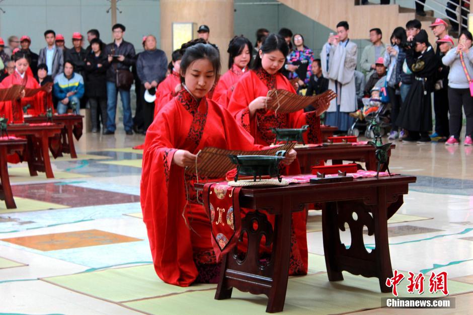 农历三月初三,是中国传统的上巳节,也称女儿节。4月18日,几十余名身着汉服的美女,来到小雁塔旁的西安博物院,并参加了传统的成人礼仪式。该节日形成于春秋末期,开始日期在农历三月上旬的巳日,魏晋以后改为三月三日。在这一天,人们成群结队去水边祭祀饮酒,用浸泡过药草的水沐浴,春游踏青。李思默 摄