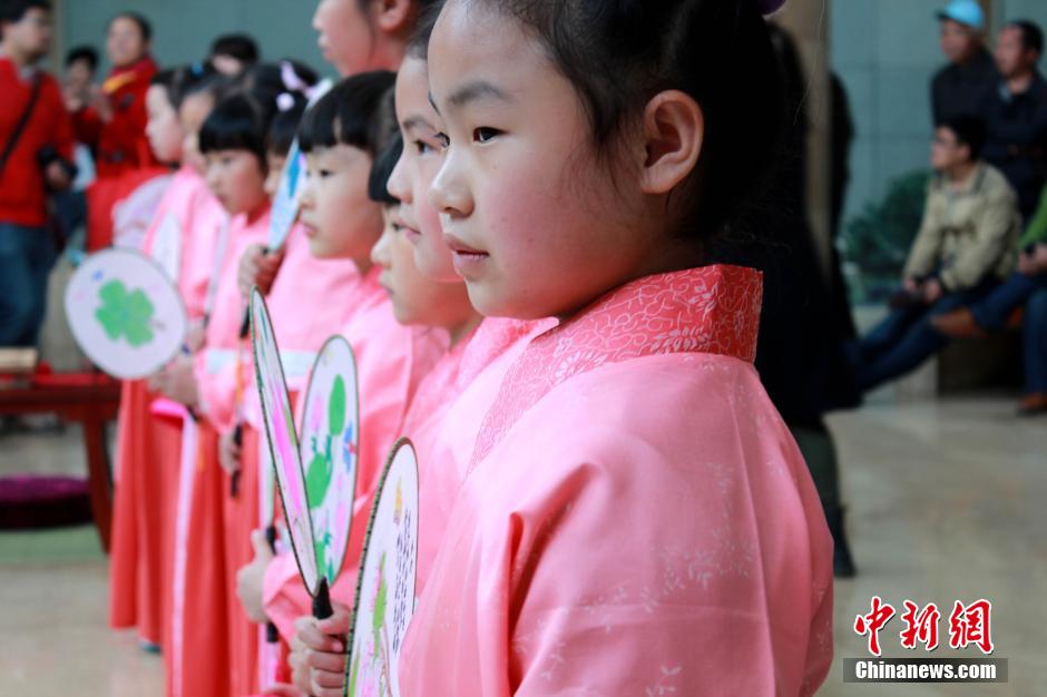 农历三月初三,是中国传统的上巳节,也称女儿节。4月18日,几十余名身着汉服的美女,来到小雁塔旁的西安博物院,并参加了传统的成人礼仪式。该节日形成于春秋末期,开始日期在农历三月上旬的巳日,魏晋以后改为三月三日。在这一天,人们成群结队去水边祭祀饮酒,用浸泡过药草的水沐浴,春游踏青。李思默 摄