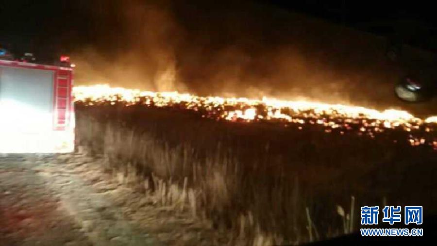 4月19日拍摄的大庆市林甸县育苇场火灾现场(手机照片)。新华社发
