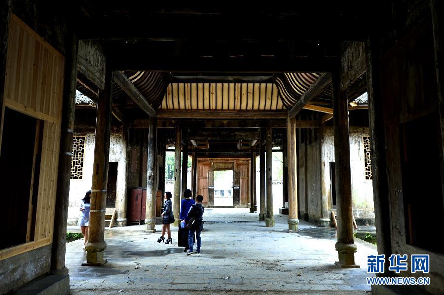 4月19日,游客在湖北省宣恩县观音堂参观。新华社发(宋文 摄)