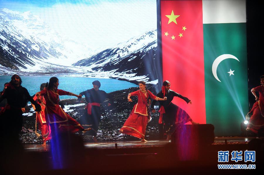 巴基斯坦舞蹈演员在中巴友好交流年启动仪式上表演传统舞蹈(2015年2月12日摄)。