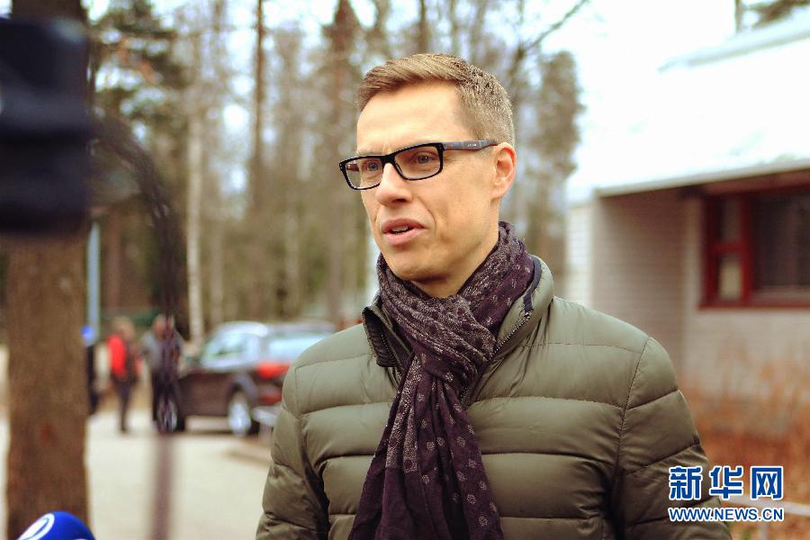 4月19日,在芬兰埃斯波,芬兰总理斯图布投票之后接受采访。 当日,芬兰议会选举开始正式投票。芬兰议会选举每四年举行一次。新华社记者李骥志摄