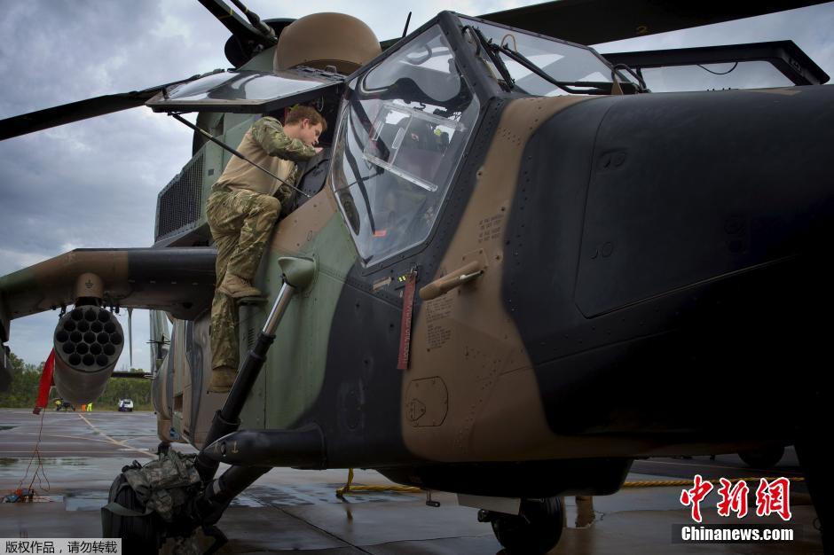 2015年4月18日消息,澳大利亚,英国哈里王子在参加澳大利亚国防军培训期间,驾驶了一架虎式武装直升侦察机并外出执行任务。哈里的正式称呼是威尔士上尉,他驾驶的这种直升机是世界上最先进的武装直升机之一。这段时间里他还和原住民长老会面,在野外宿营,并参加了一场澳大利亚残疾运动员的轮椅橄榄球赛。英国哈里王子已经完成了共4周的澳大利亚军事培训中两周的任务。哈里王子表示,他期待着开启他的生活中的“新的篇章”。