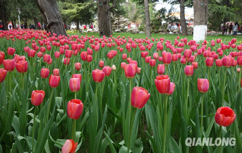 4月19日,中山公园郁金香鲜艳绽放,吸引众多游客纷至沓来,踏青赏花的人络绎不绝。千龙网记者 戚连民摄
