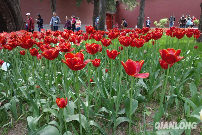 4月19日,中山公园郁金香鲜艳绽放,吸引众多游客纷至沓来,踏青赏花的人络绎不绝。千龙网记者 戚连民摄