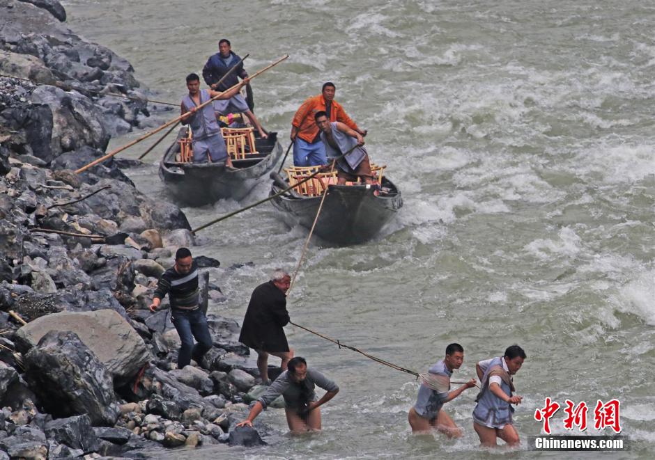 纤夫在神农溪畔牵引木船溯溪而上。 李风 摄
