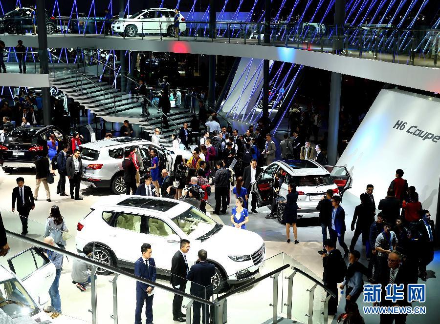 4月20日,观众在长城展台参观。当日,2015上海国际车展在上海国家会展中心拉开帷幕。本次车展吸引了来自全球18个国家和地区的近2000家企业参展,展出整车1343辆,其中新能源车103辆,概念车47辆。新华社记者陈建力摄