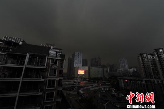 4月20日下午,福州上空黑云压城,随之下起了大雨,给出行的市民带来了极大不便。 张斌 摄