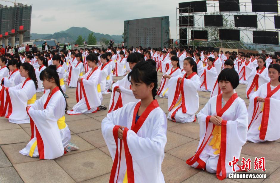 农历三月初三,是中国古老的传统节日——上巳节,又称为“女儿节”。4月21日,湖南省洪江市举办“三月三”女儿节活动,千名14-24周岁的年轻女子,身穿传统服装,队列整齐,依照古时习俗庄严宣誓,体验成人大典。 唐小晴 摄