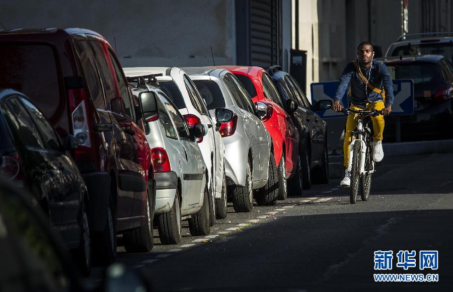 4月20日,在法国巴黎,一名男子骑自行车经过巴黎街头。今年4月22日是第46个世界地球日。从年初以来,为保护环境,巴黎市政府已经或将要实施的措施包括在空气污染严重时实行私用汽车单双号行驶、设立可免费租用公共自行车、继续修建污染少的地面轻轨交通线路、大幅度增加电动公交车和电动出租车的比例等。新华社记者陈晓伟摄