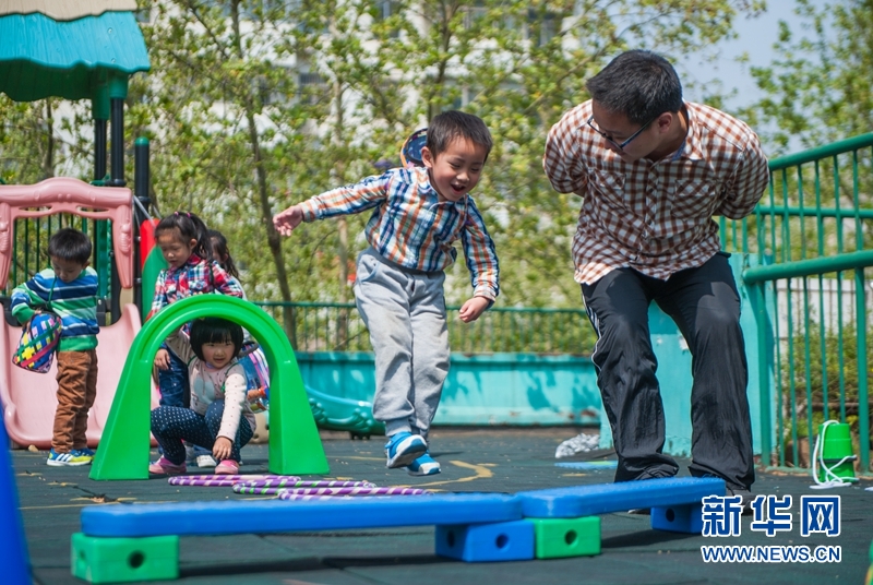 吴鸣宸与孩子们一起玩耍。(新华网发 丁小添摄)