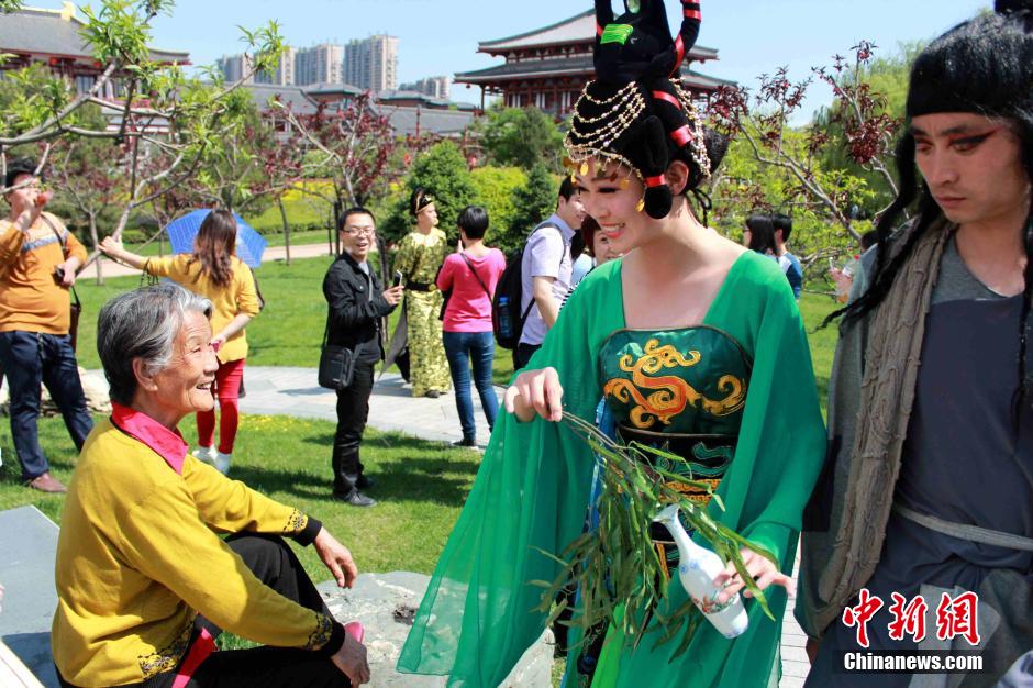 西安再现唐代上巳节习俗 古装仕女水边“祓禊”