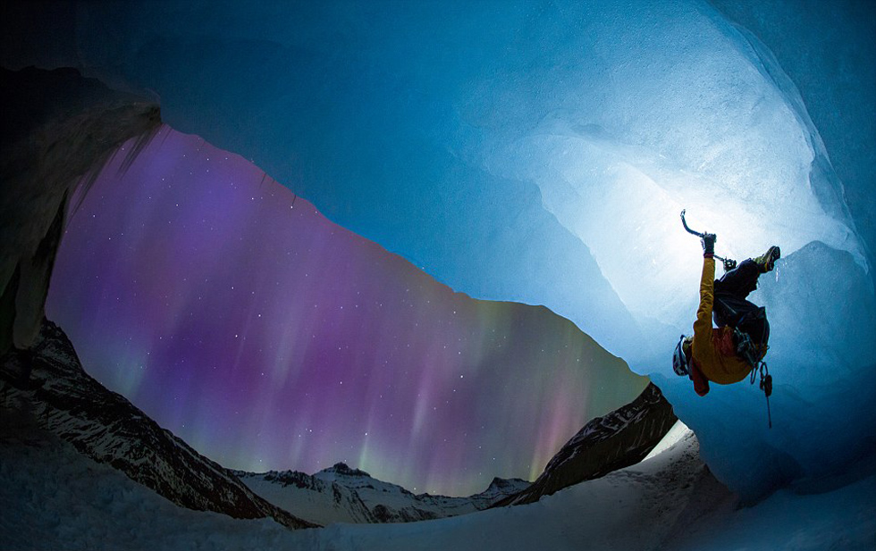 五彩斑斓的极光点亮夜晚星空为冰川增添了一丝魔幻色彩。(网页截图)
