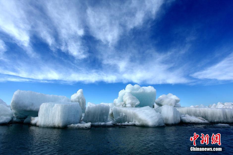 据悉,由于受气候条件的影响,风积冰山的场景并非每年都能见得到,只有在春季持续刮风时才能在湖边出现。