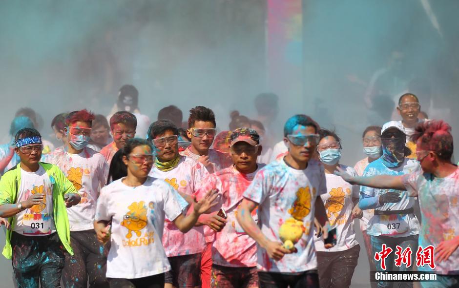 南京上演青春激情彩色跑 现场五彩粉末满天飞