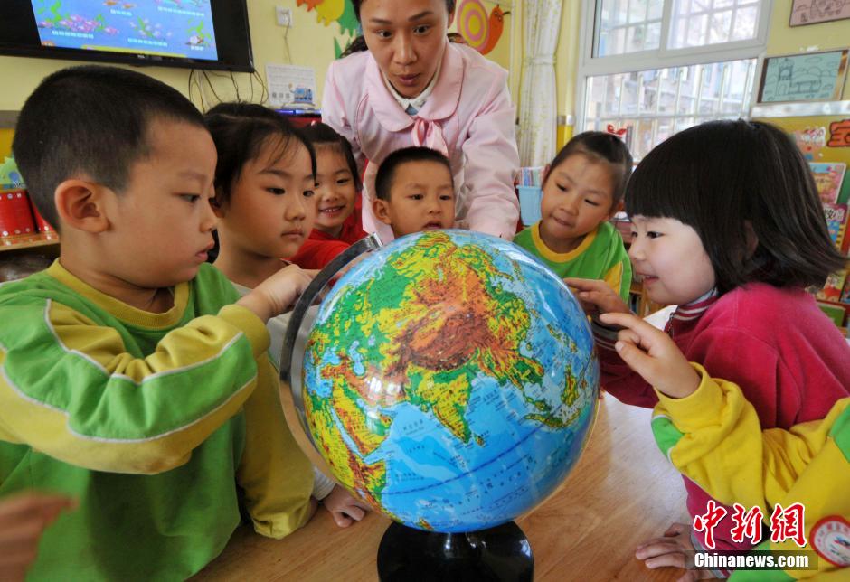 4月22日是第46个世界地球日,河北省邢台市一幼儿园开展“爱护地球 保护家园”活动,通过讲解地球构造及现状,向孩子们普及环保知识,描绘大家一起要保护的地球。今年“世界地球日”的主题为“珍惜地球资源,转变发展方式——提高资源利用效益”。中新社发 黄涛 摄