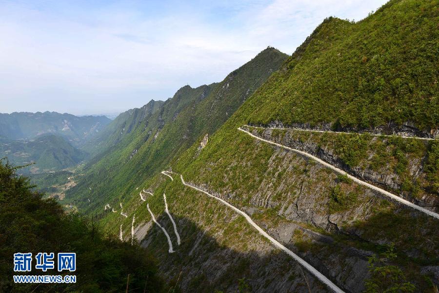 这是4月22日拍摄的湖北省恩施市的“天路”。在湖北省西部山区的恩施市,有一条被称为深山“天路”的公路闻名遐迩。这条有如一条玉带紧贴着绝壁的“壁挂公路”位于恩施市新塘乡双河村至木栗园村公路的扯根坡路段。公路穿行在高山绝岭之中,由当地村民历尽艰辛,在绝壁上开凿而成。深山“天路”春夏季时常云雾缭绕,秋冬季多是雪凌交加,险峻异常。行走其上,可感受湖北山区居民坚韧不拔的精神气魄,领略土苗山乡绝美的自然风景。新华社发(杨顺丕 摄)