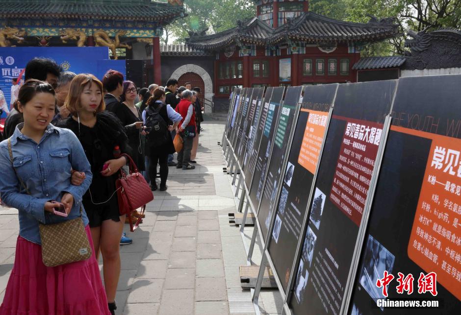 4月23日,由北京市禁毒教育基地主办,北京禁毒教育协会等以及2家社区青年汇积极参与的纯净都市系列--2015春季禁毒主题活动在龙潭湖公园举行。活动以“拥抱健康 远离毒品”为主题,通过“互联网+”的宣传模式,用微信公众号,向网友发布禁毒知识,再通过网友发微博、微信朋友圈扩大活动覆盖面,让更多的人了解毒品的危害,远离毒品健康生活。主办方还在公园内设立了12个站点,每一个站点都设有一道禁毒知识问题和提示。中新社发 任海霞 摄