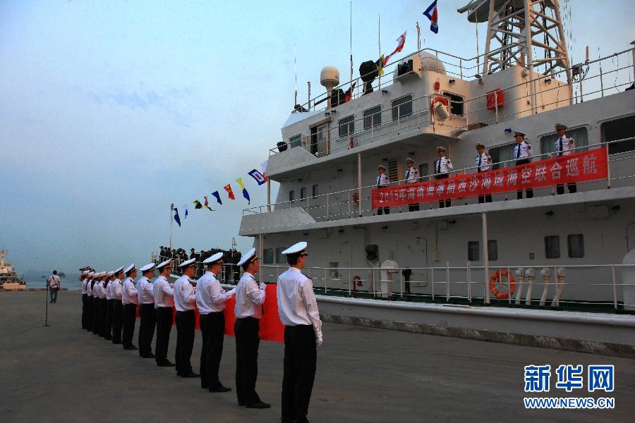 4月21日6点55分,在同事的目送下,海南海事局“海巡21”即将驶离三亚港。 “海巡21”是中国第一艘千吨级以上可搭载直升机的海事巡逻船。船长93米,标准排水量1500吨,2001年建造完工并于东海服役,2012年加入海南海事局服役至今。两年多时间里,“海巡21”参加了中国南海和琼州海峡各处水域的近百次任务。 4月21日,海南海事局“海巡21”与“海巡1103”船舶编队从三亚启航,开赴西沙海域开展为期3天的巡航执法行动。 新华社记者 郭求达摄