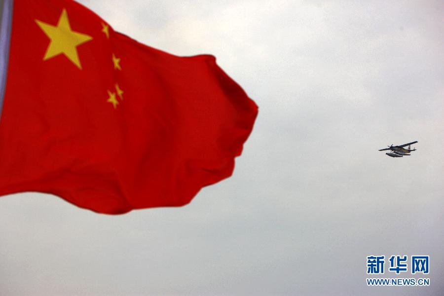 4月21日11时许,参加海空联合巡航的水上飞机掠过“海巡21”上空。这是在西沙水域开展首次有水上飞机参与的海空联合巡航执法行动。 “海巡21”是中国第一艘千吨级以上可搭载直升机的海事巡逻船。船长93米,标准排水量1500吨,2001年建造完工并于东海服役,2012年加入海南海事局服役至今。两年多时间里,“海巡21”参加了中国南海和琼州海峡各处水域的近百次任务。 4月21日,海南海事局“海巡21”与“海巡1103”船舶编队从三亚启航,开赴西沙海域开展为期3天的巡航执法行动。 新华社记者 郭求达摄