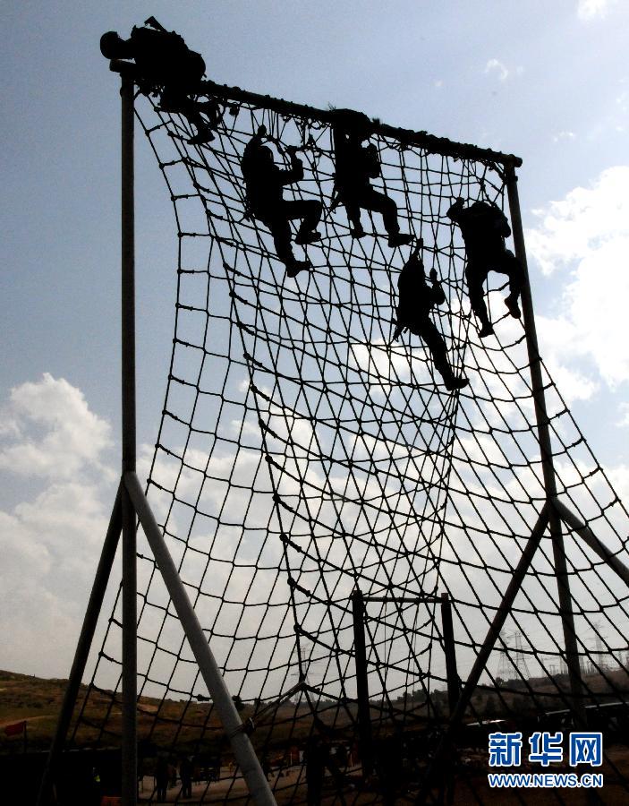 4月22日,在约旦首都安曼,中国队参加“越野极限”比武。当日,在约旦举行的第七届“勇士竞赛”国际特种兵比武进入第四天,中国队参加了“越野极限射击”“震慑”“铁人极限射击”项目的比武。新华社记者蒋少清摄