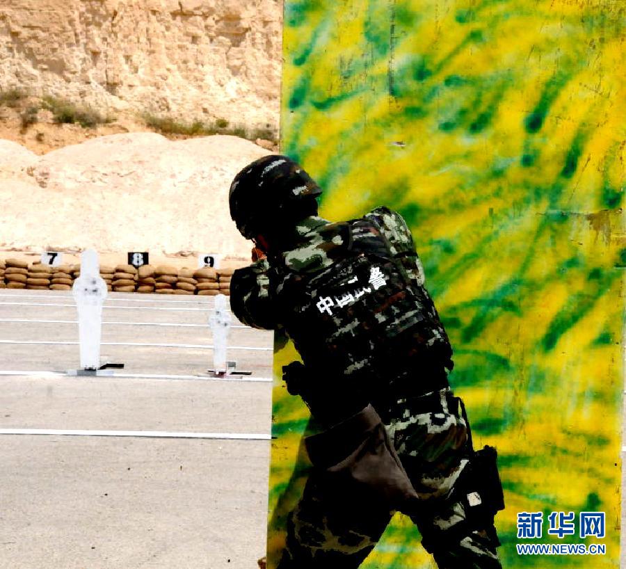 4月22日,在约旦首都安曼,中国队参加“铁人极限射击”比武。当日,在约旦举行的第七届“勇士竞赛”国际特种兵比武进入第四天,中国队参加了“越野极限射击”“震慑”“铁人极限射击”项目的比武。新华社记者蒋少清摄