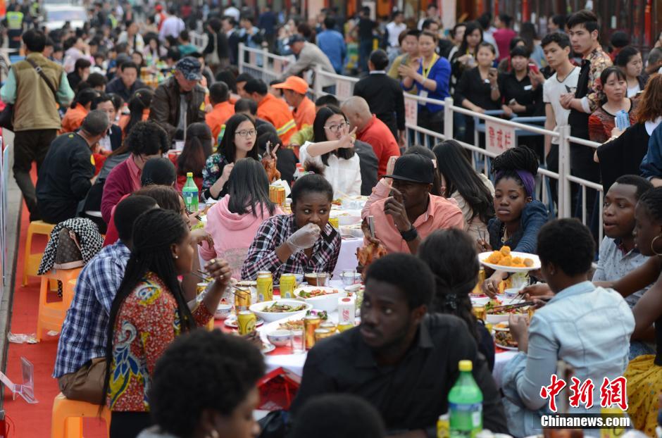 4月24日,2015年第六届杭州拱墅运河美食节在杭州胜利河美食街拉开序幕,中外游客共享运河美食嘉年华。美食节持续至5月3日结束,历时10天,本届美食节活动的主题是“运河南端醉拱墅 商旅繁华乐享地”。中新社发 李晨韵 摄