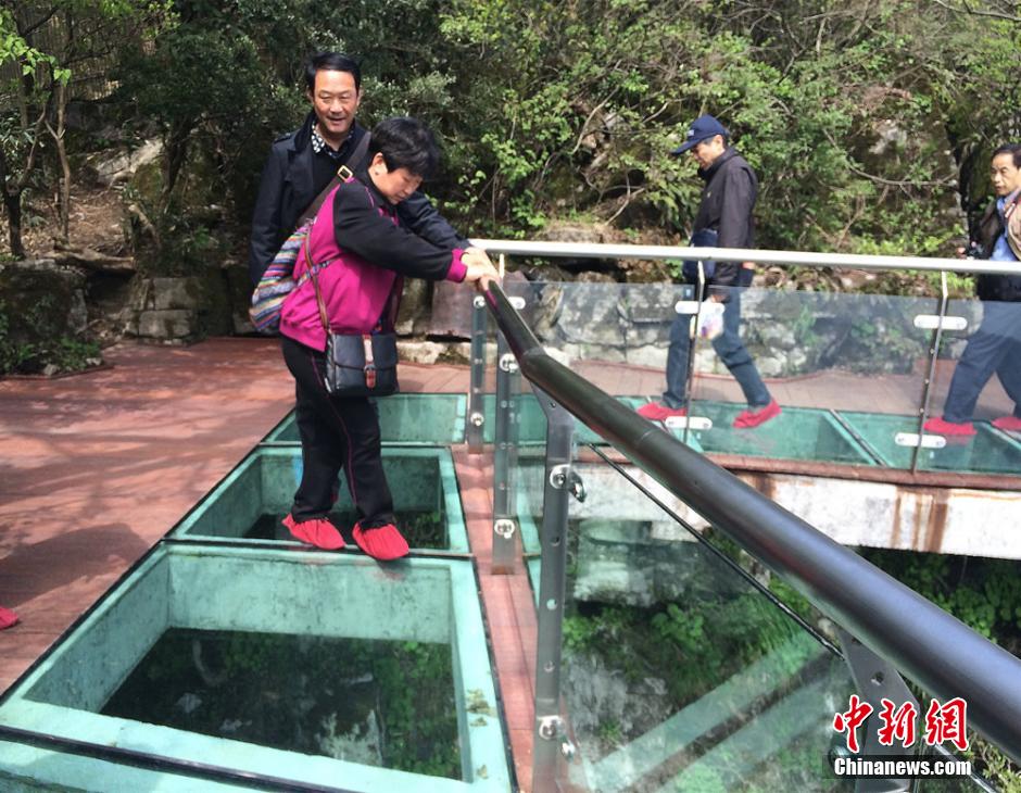 湖南张家界天门山新增玻璃栈道 游客步步惊心