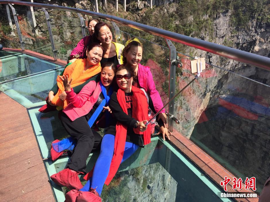 湖南张家界天门山新增玻璃栈道 游客步步惊心