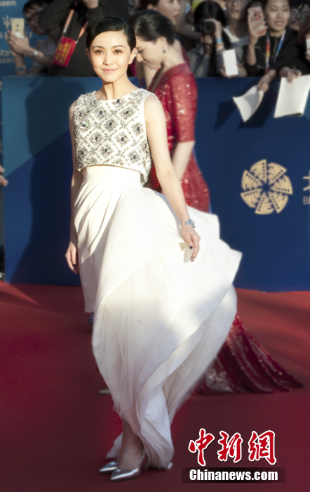4月23日,第五届北京国际电影节举行闭幕式,在闭幕红毯环节,众多女星穿着或性感逼人或清新雅丽的服饰闪亮登场,让粉丝们练练尖叫。图为郭采洁亮相红毯。 中新网记者 翟璐 摄