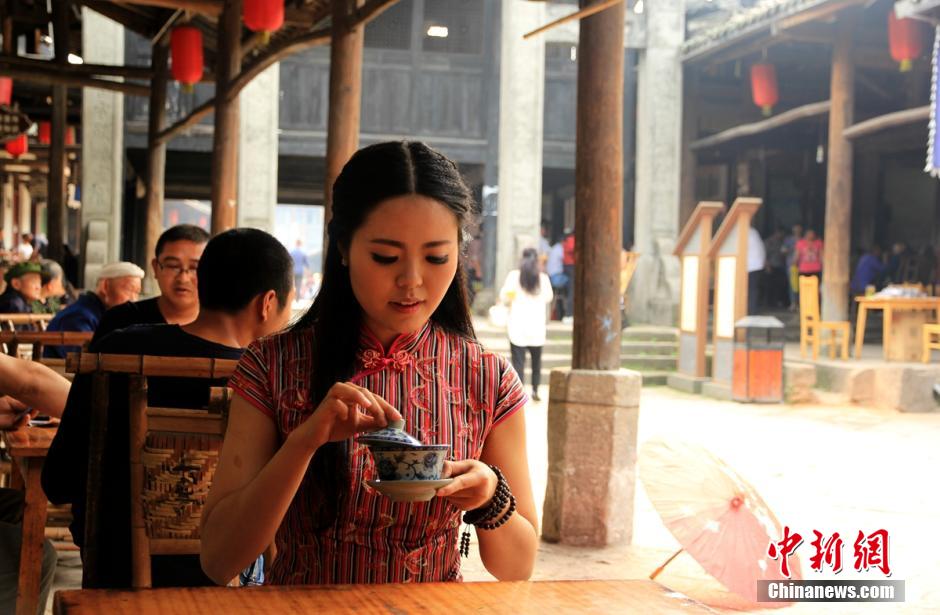 四川乐山妹子拍写真 展示家乡古韵犍为