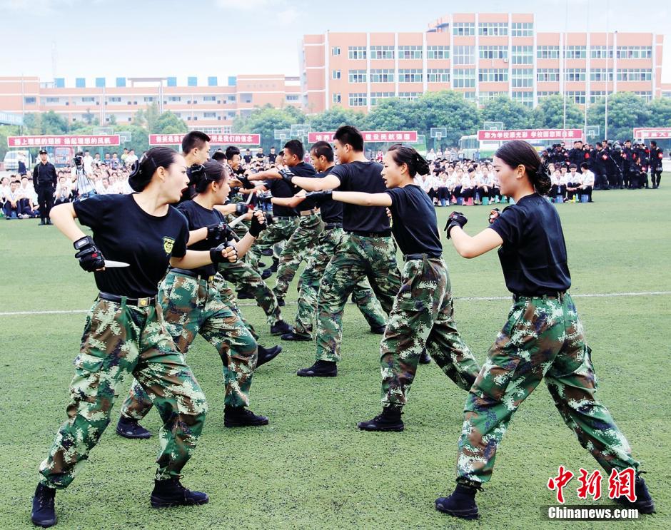无论是在烈日下,还是在暴雨中,她们都会严格训练,有时还在泥泞中、河道里训练匍匐前进、空翻、格斗、擒拿,水中憋气等技能。李女士称:“从大一开始,学院就开设了军事训练、跆拳道等特色课程,除了塑造了自己强健的体魄和超强的反恐能力、快速反应外,还要学习文质彬彬的国学课。”