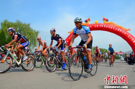 4月27日,为期两日的“体彩·环中原”2015自行车公开赛26日在河南洛宁开赛,来自美国、英国、加拿大等16个国家和中国内地15个省、市、自治区的300多名运动员盛装上场。“环中原”2015自行车公开赛在河南洛宁开赛。 周小云 摄
