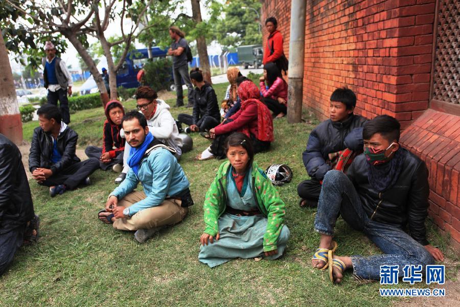 4月26日,在尼泊尔加德满都的特里布万国际机场,登山者家属等待亲人的消息。据尼泊尔旅游部消息,因25日尼泊尔地震造成的珠穆朗玛峰雪崩目前至少造成18名在南坡的登山者死亡。 新华社发(苏尼尔·夏尔马摄)