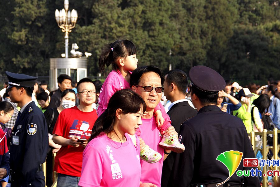 一家三口齐上阵参加北京国际长跑节。 中国青年网记者 隗功臣 摄