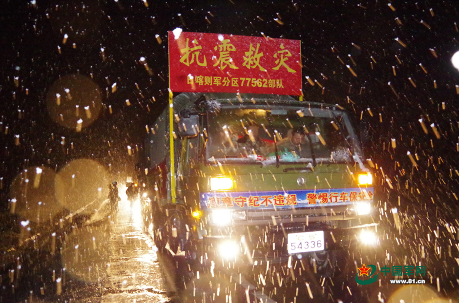 驻藏某团顶风冒雪千里驰援灾区。(谭书文 摄)