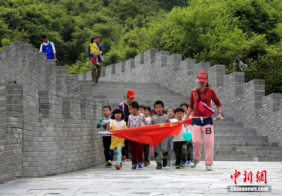 4月25日,江西南昌一旅游景区在山间修建起了一座绵延数公里的山寨“长城”,目前还没有完工,但适逢周末,已经有不少游客前来游玩。进入景区可以看到,沿着山体绵延曲折的城墙每隔一段都会有一座烽火台,外观与古长城并无大异,但墙体所用多系现代石材。 有游客表示在社交网络朋友圈戏称到了长城很多好友误以为真,也有到过古长城的游客认为这样仿建的建筑虽然外观相像,但那种历史的厚重感与文化价值是无可复制的。姜涛摄