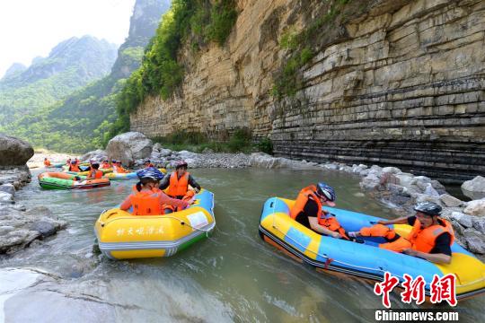 4月28日下午,湖北兴山县气温高达34摄氏度,该县朝天吼漂流景区正式开漂,来自武汉、宜昌、襄阳的“勇敢者”抢得今年首漂的机会。